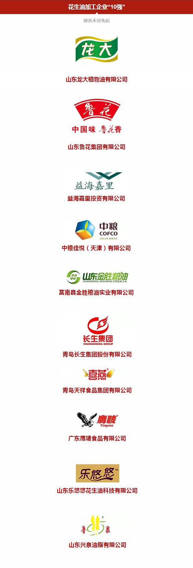 尊龙植物油公司获评中国花生油加工企业10强