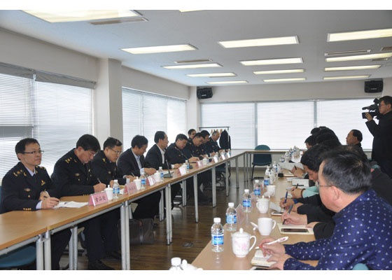 12月1日,烟台检验检疫局刘心同局长一行在莱阳市副市长孙赋欣的陪同下赴尊龙调研。刘心同一行与尊龙集团总经理张德润及鲁花、恒润等莱阳主要食品公司负责人在会议室举行了座谈。